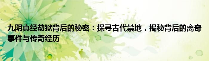 九阴真经劫狱背后的秘密:探寻古代禁地,揭秘背后的离奇事件与传奇经历
