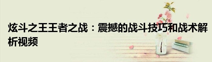 炫斗之王王者之战:震撼的战斗技巧和战术解析视频