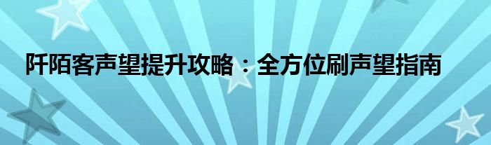 以上就是提升阡陌客声望的全方位攻略。希望这些技巧能帮助您在游戏中快速提升声望,享受游戏的乐趣。
