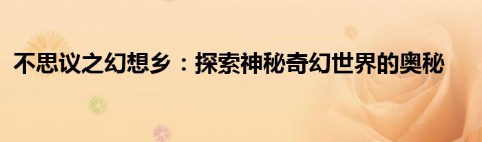 不思议之幻想乡:探索神秘奇幻世界的奥秘