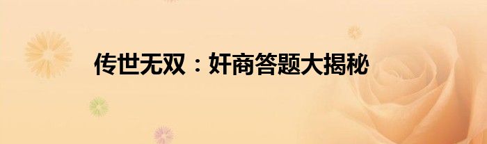 本文将带您走进传世无双的世界,揭开奸商答题背后的秘密。我们将深入探讨游戏中的奸商行为,解析他们的答题技巧与策略,让您在游戏中更好地应对挑战,避免被奸商欺骗。同时,本文还将分享一些实用的游戏攻略和技巧,助您在传世无双的世界里畅游无阻。