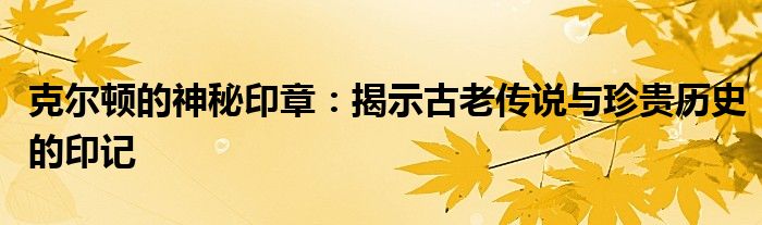 克尔顿的神秘印章:揭示古老传说与珍贵历史的印记