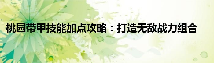 本文将详细介绍在桃园游戏中如何为带甲技能进行合理的技能点分配,以帮助你打造一个无敌的战力组合。通过优化技能配置,你将能更高效地完成任务,提高游戏体验。