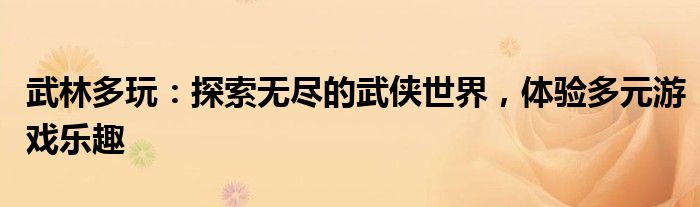 本文将围绕“武林多玩”这一主题展开,带您进入一个充满武侠魅力的多元游戏世界。我们将深入探讨这一关键词背后的丰富内涵,包括各种游戏玩法、故事背景、角色设定等方面,带您领略无尽的武侠世界,体验多元游戏乐趣。