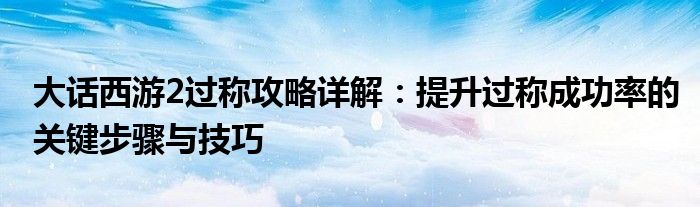 大话西游2是一款深受玩家喜爱的游戏,其中的过称环节更是考验玩家实力和智慧的关键所在。为了帮助广大玩家成功过关,本文将详细介绍大话西游2过称攻略,助力您在游戏中取得更好的成绩。