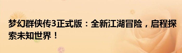 随着梦幻群侠传系列游戏的持续火热,广大游戏爱好者翘首以盼的《梦幻群侠传3正式版》终于正式上线了!在这个全新的版本中,玩家将再次踏入神秘莫测的江湖世界,开启一段全新的冒险之旅。