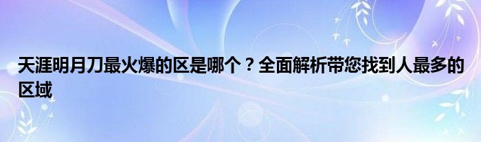 天涯明月刀最火爆的区是哪个?全面解析带您找到人最多的区域