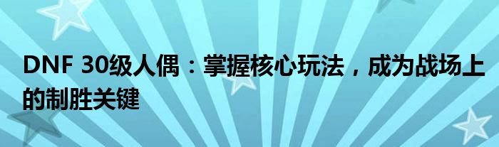 DNF 30级人偶:掌握核心玩法,成为战场上的制胜关键