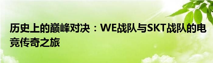 历史上的巅峰对决:WE战队与SKT战队的电竞传奇之旅