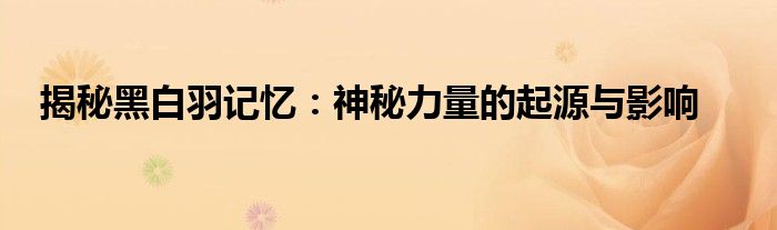 揭秘黑白羽记忆:神秘力量的起源与影响