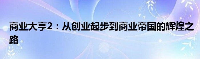 商业大亨2:从创业起步到商业帝国的辉煌之路