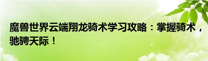 魔兽世界云端翔龙骑术学习攻略:掌握骑术,驰骋天际!