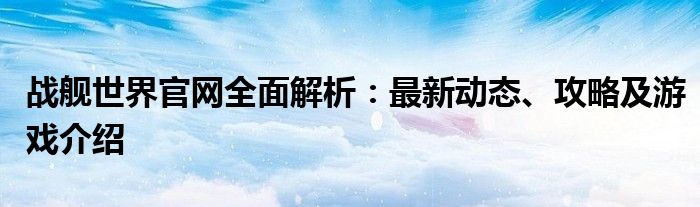 战舰世界官网全面解析:最新动态、攻略及游戏介绍