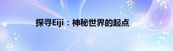 探寻Eiji:神秘世界的起点