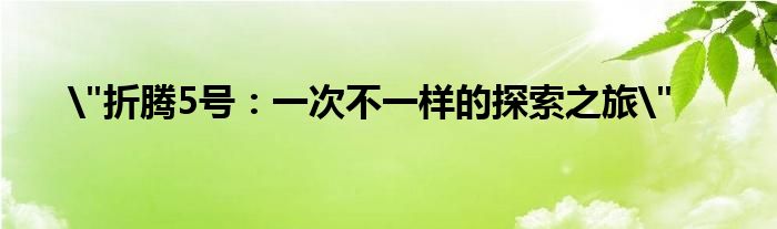 "折腾5号"是一场别开生面的探索之旅。在这个旅程中,我们将带领你走进未知的世界,体验不同寻常的冒险。