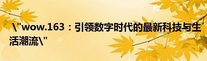 "wow.163:引领数字时代的最新科技与生活潮流"