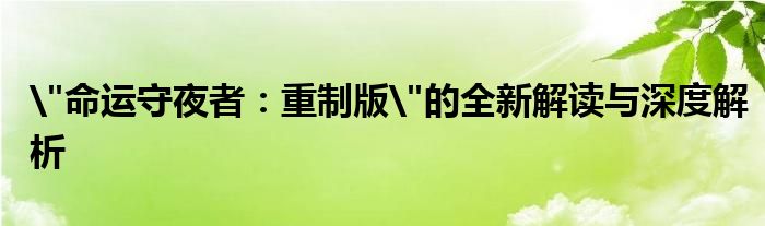 "命运守夜者:重制版"的全新解读与深度解析