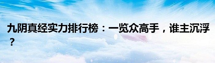 九阴真经实力排行榜:一览众高手,谁主沉浮?