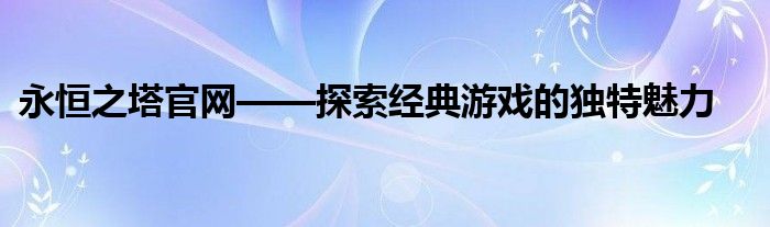 欢迎来到永恒之塔官网!这里是探索经典游戏的独特魅力的最佳场所。无论您是游戏新手还是老玩家,我们都有丰富的内容为您呈现。