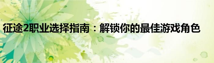 在征途2这款游戏中,选择合适的职业角色是玩家迈向成功的第一步。本文将详细解析征途2中的各个职业特点,帮助新手玩家理解不同职业的优势与劣势,以便做出明智的选择。