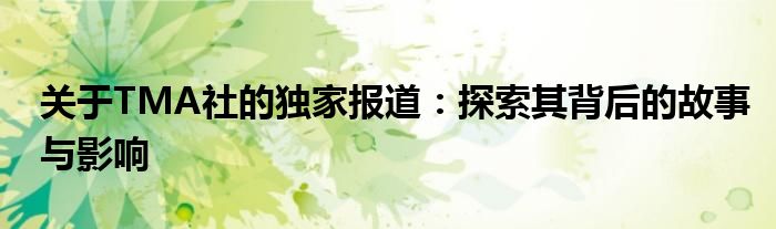本文将深入探讨TMA社的起源、发展历程以及其对相关产业和社区产生的影响。通过详细介绍其成员构成、组织活动以及其背后的理念和目标,本文旨在让读者更好地了解这个独特的社区及其重要性。
