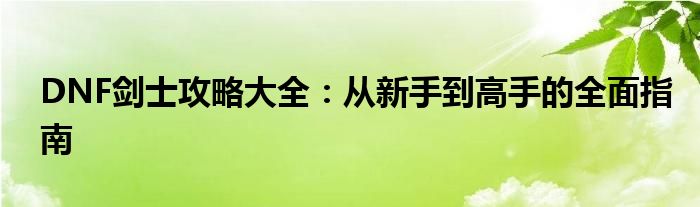 DNF剑士攻略大全:从新手到高手的全面指南