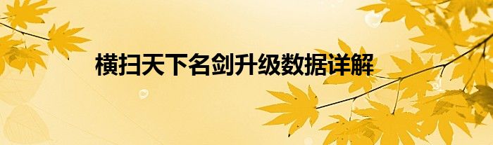 横扫天下名剑升级数据详解