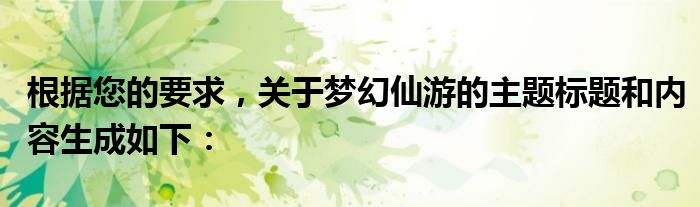 根据您的要求,关于梦幻仙游的主题标题和内容生成如下:
