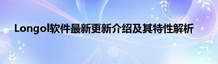 Longol软件最新更新介绍及其特性解析