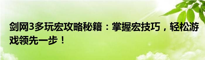 剑网3多玩宏攻略秘籍:掌握宏技巧,轻松游戏领先一步!