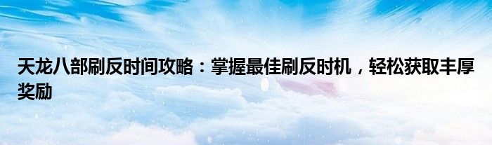 本文将为大家介绍天龙八部游戏中的刷反时间攻略。通过掌握最佳刷反时机,玩家可以更加高效地获取丰厚奖励,提升游戏体验。本文将详细介绍刷反时间的策略、注意事项以及常见问题解答,帮助玩家轻松掌握天龙八部刷反时间的技巧。