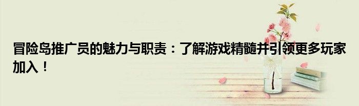 冒险岛推广员的魅力与职责:了解游戏精髓并引领更多玩家加入!
