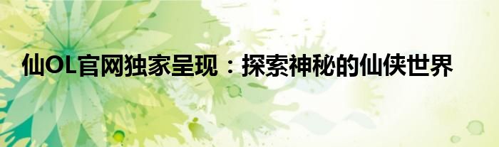 现在就来仙OL官网,加入我们,一起探索神秘的仙侠世界吧!让我们在这个充满奇幻和冒险的世界里,共同创造属于我们自己传奇故事。
