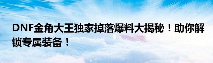 DNF金角大王独家掉落爆料大揭秘!助你解锁专属装备!