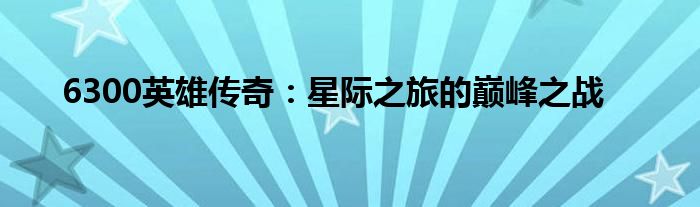 在这个充满未知与危险的宇宙中,《6300英雄传奇》展现了英雄们的勇气、智慧和友谊。他们为了荣誉、为了信念,勇敢地迎接未来的挑战和未知的危险。让我们一起见证这场星际之旅的巅峰之战吧!