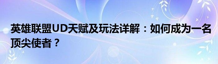 英雄联盟UD天赋及玩法详解:如何成为一名顶尖使者?