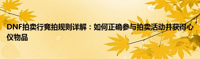 本文旨在详细介绍DNF(地下城与勇士)拍卖行中的竞拍规则,帮助玩家更好地参与拍卖活动,获取心仪的物品。