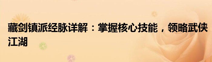 总结:藏剑镇派经脉是武侠江湖中的一项重要技能,通过本文的详细介绍,希望大家能够更好地理解和掌握这一技能,从而在武侠江湖中领略更多的战斗乐趣。
