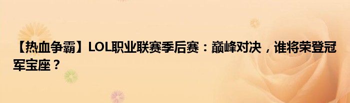 【热血争霸】LOL职业联赛季后赛:巅峰对决,谁将荣登冠军宝座?
