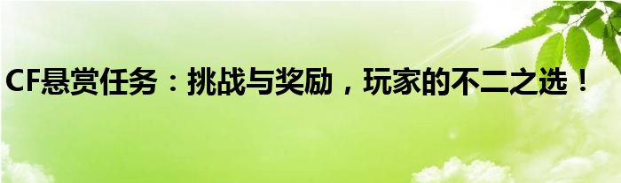 “CF悬赏任务:挑战与奖励,玩家的不二之选!”——探索刺激的游戏挑战,赢取丰厚的奖励!