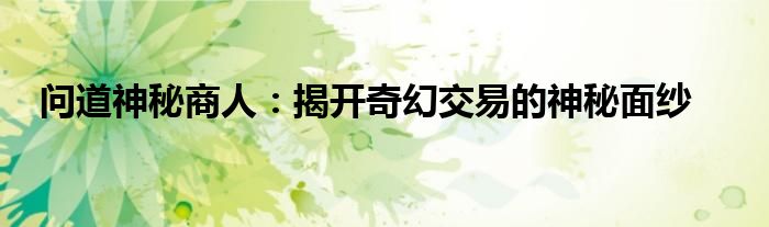 问道神秘商人:揭开奇幻交易的神秘面纱