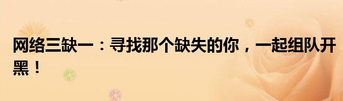 网络三缺一:寻找那个缺失的你,一起组队开黑!