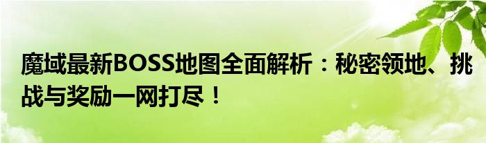 本文将为你详细介绍魔域最新的BOSS地图,包括秘密领地、挑战难度以及丰厚的奖励。我们将深入探讨这个充满冒险与机遇的新地图,帮助你更好地了解并征服这些强大的BOSS。