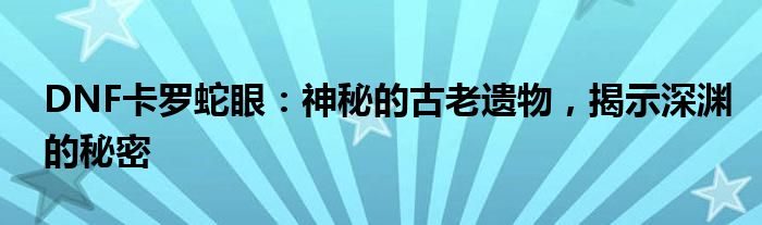 DNF卡罗蛇眼:神秘的古老遗物,揭示深渊的秘密