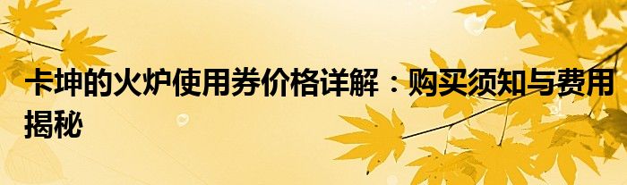 如果您正在寻找关于卡坤的火炉使用券的价格信息,本文将会为您提供详细的购买须知和费用揭秘。在本文中,我们将锁定关键词“卡坤的火炉使用券多少钱”,并为您提供全方位的信息。