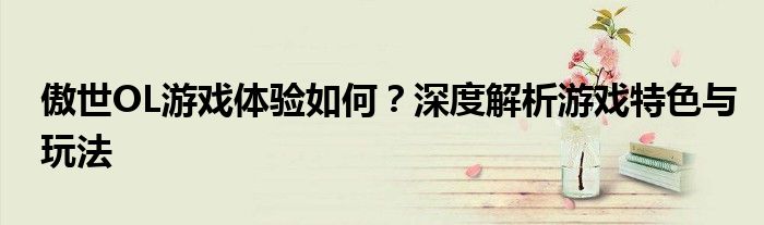 傲世OL作为一款受欢迎的网络游戏,其独特的游戏设定和丰富的玩法吸引了大量玩家。本文将围绕傲世OL的游戏体验、特色玩法等方面进行深度解析,帮助你对这款游戏有一个更全面的了解。