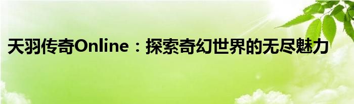 以上是关于《天羽传奇Online》的标题和内容创作,希望对您有所帮助。