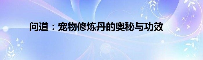 问道:宠物修炼丹的奥秘与功效