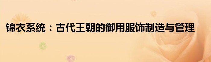 锦衣系统起源于古代皇宫内的服饰制作部门,随着王朝的发展,逐渐演变为一个集服饰制造、管理、监察于一体的综合性机构。在明清时期,锦衣系统达到鼎盛,成为皇权象征的重要组成部分。