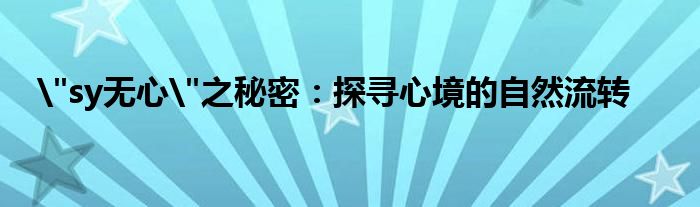 本文将带领大家探索关于“sy无心”这一关键词背后的深层含义。在我们生活的快节奏时代,人们常常在忙碌中失去了内心的平静与宁静,而“sy无心”正是对这种现象的一种反思与探寻。